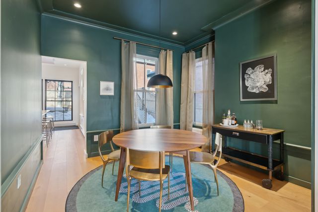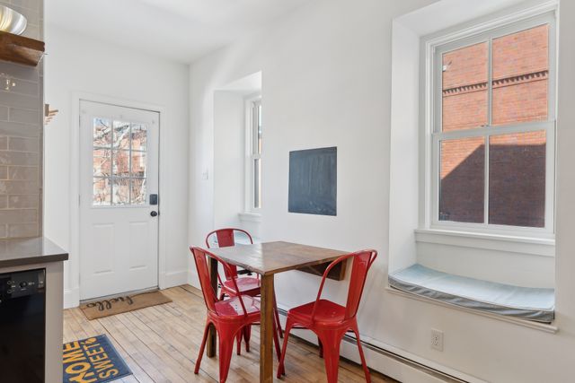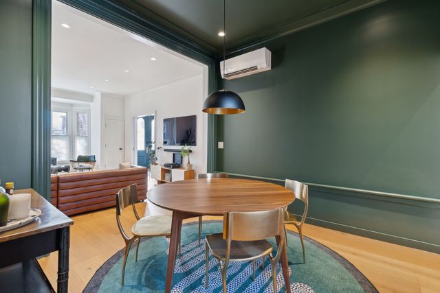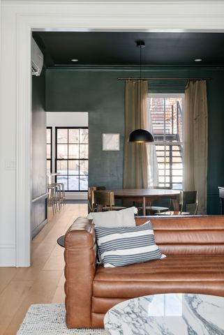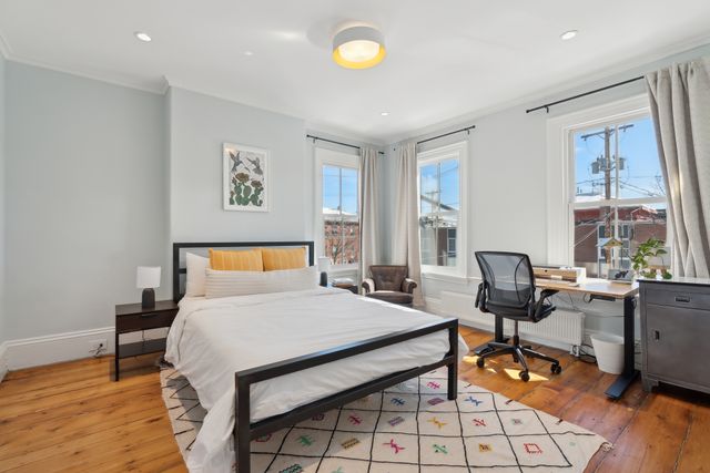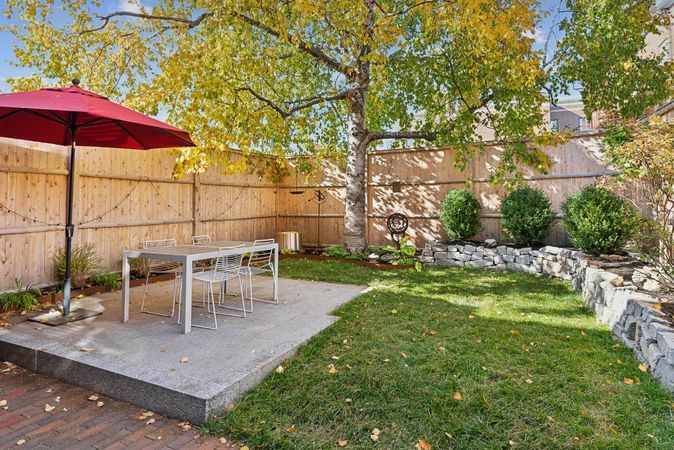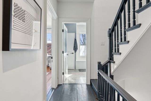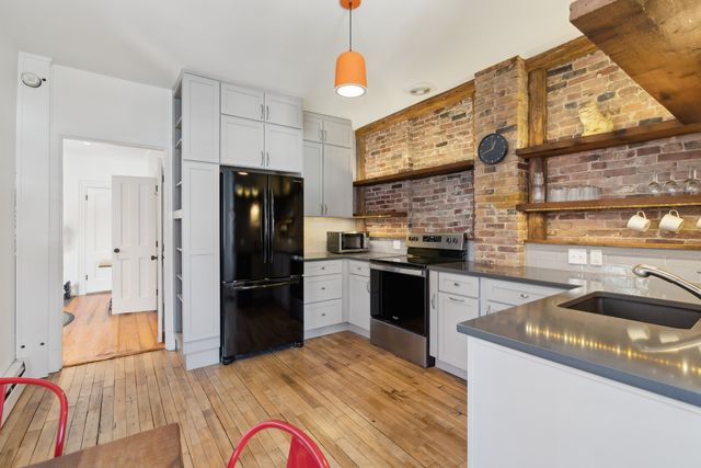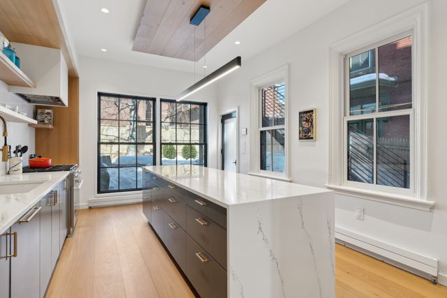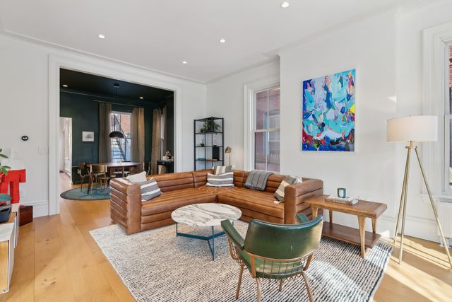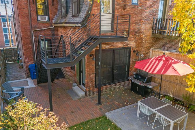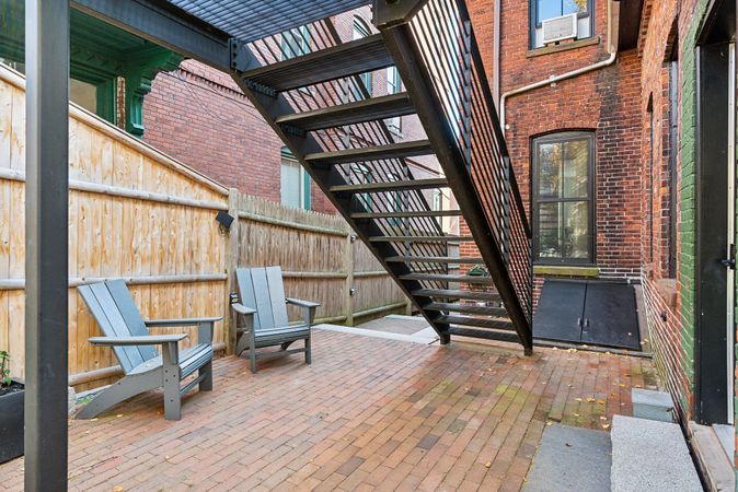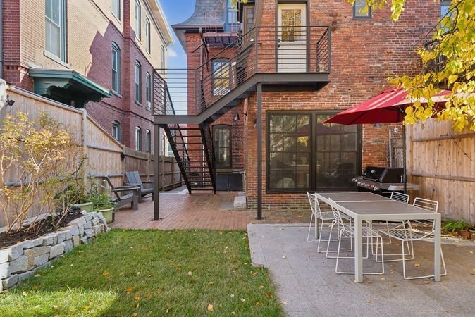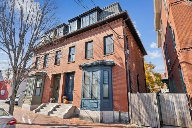 Discover the perfect blend of historic charm and modern sophistication in this beautifully renovated 1840s townhouse, ideally located in the heart of Portland. This spacious two-unit property spans 2,400 square feet of thoughtfully designed living space, offering unparalleled versatility for investors or multi-generational living. With 4 bedrooms, 3.5 bathrooms, and a private backyard, this home is a rare gem, meticulously updated in 2022. The primary unit welcomes you with an open-concept first floor, featuring a sunlit living and dining area and a gourmet kitchen outfitted with Miele appliances, quartz countertops, and custom cabinetry. On the second floor, you'll find a stylishly appointed guest bedroom and bathroom. The third floor is home to a luxurious primary suite with and generous closet space, along with an additional bedroom that's perfect for family or guests, and a dedicated home office. The second unit offers an updated kitchen, original hardwood floors, and a cozy bedroom. Currently used as a rental property, this space is equally suited as a guest suite or can be transformed into a second primary suite with minimal effort. A custom metal staircase provides a private entrance to the unit, enhancing privacy and convenience. Step outside to your private backyard oasis, a serene space for gardening, hosting summer gatherings, or relaxing after a day in the city. Outdoor walkway and patio lighting add ambiance and functionality to the space.A hidden entrance connects the apartment to the primary unit, ensuring seamless access. Whether used as an in-law suite, Airbnb rental, or second primary suite, its flexible design makes it a true gem.