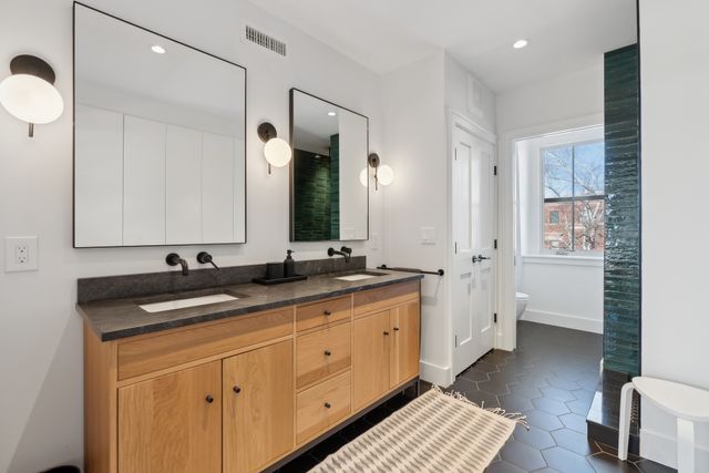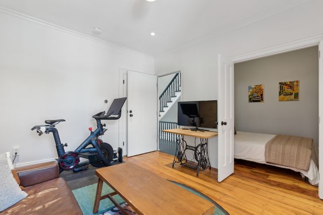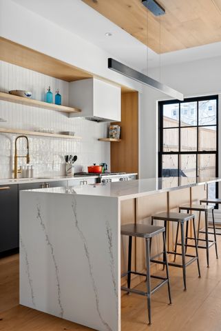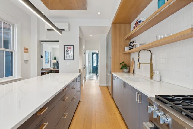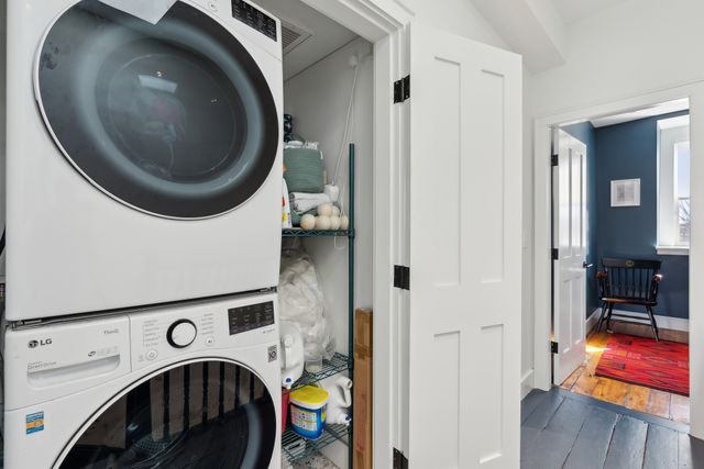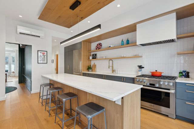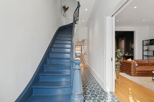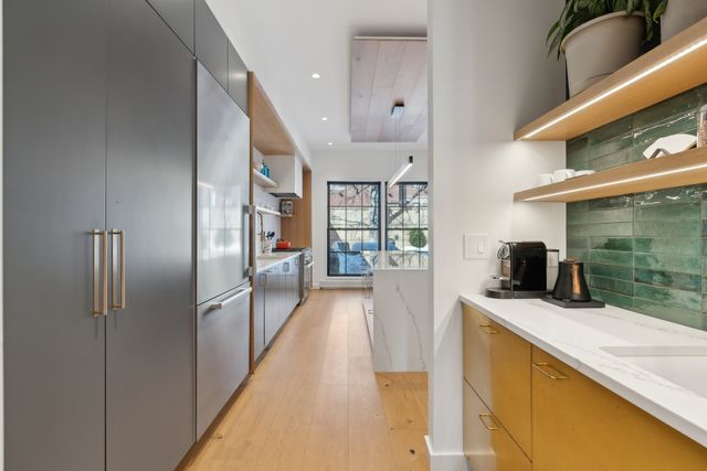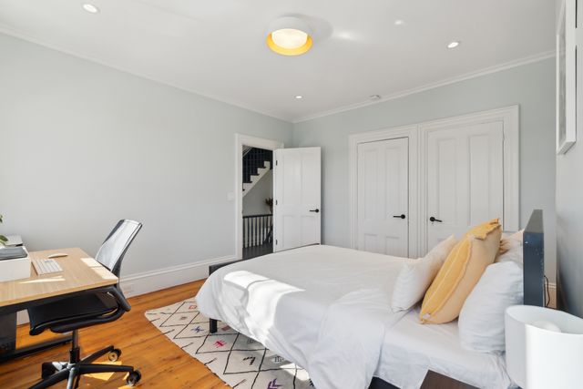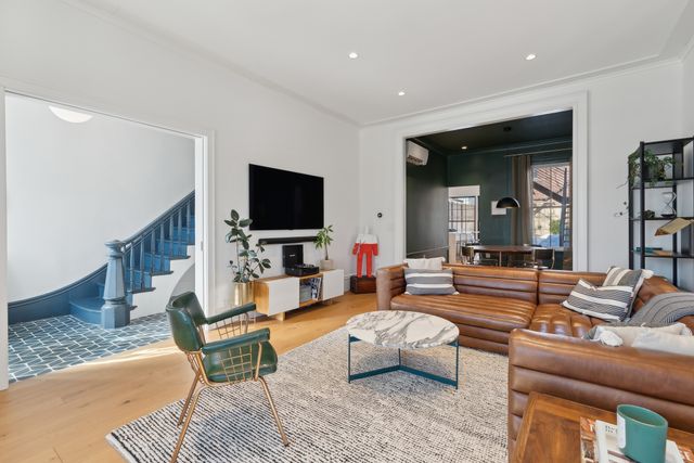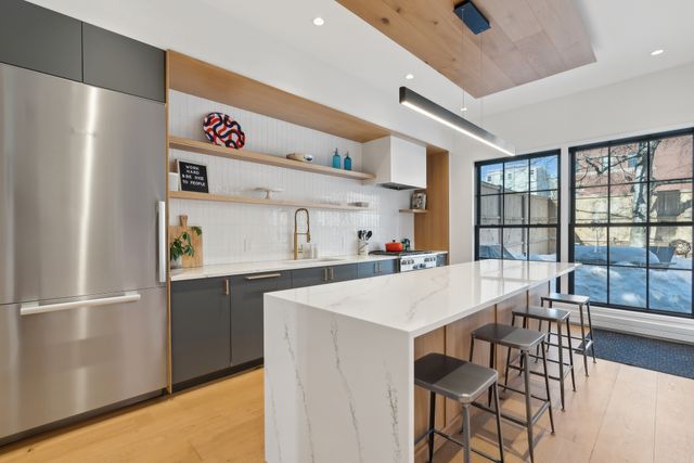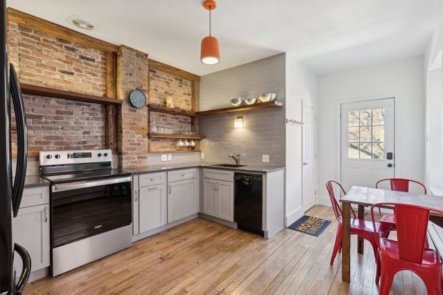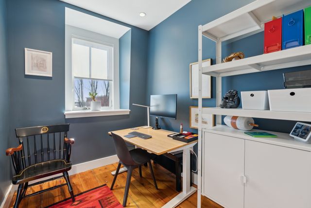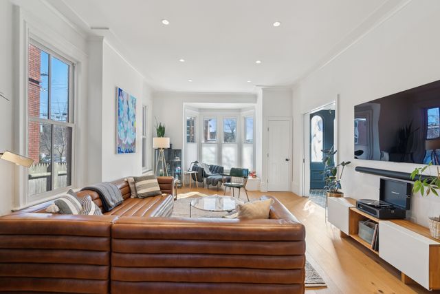 Discover the perfect blend of historic charm and modern sophistication in this beautifully renovated 1840s townhouse, ideally located in the heart of Portland. This spacious two-unit property spans 2,400 square feet of thoughtfully designed living space, offering unparalleled versatility for investors or multi-generational living. With 4 bedrooms, 3.5 bathrooms, and a private backyard, this home is a rare gem, meticulously updated in 2022. The primary unit welcomes you with an open-concept first floor, featuring a sunlit living and dining area and a gourmet kitchen outfitted with Miele appliances, quartz countertops, and custom cabinetry. On the second floor, you'll find a stylishly appointed guest bedroom and bathroom. The third floor is home to a luxurious primary suite with and generous closet space, along with an additional bedroom that's perfect for family or guests, and a dedicated home office. The second unit offers an updated kitchen, original hardwood floors, and a cozy bedroom. Currently used as a rental property, this space is equally suited as a guest suite or can be transformed into a second primary suite with minimal effort. A custom metal staircase provides a private entrance to the unit, enhancing privacy and convenience. Step outside to your private backyard oasis, a serene space for gardening, hosting summer gatherings, or relaxing after a day in the city. Outdoor walkway and patio lighting add ambiance and functionality to the space.A hidden entrance connects the apartment to the primary unit, ensuring seamless access. Whether used as an in-law suite, Airbnb rental, or second primary suite, its flexible design makes it a true gem.